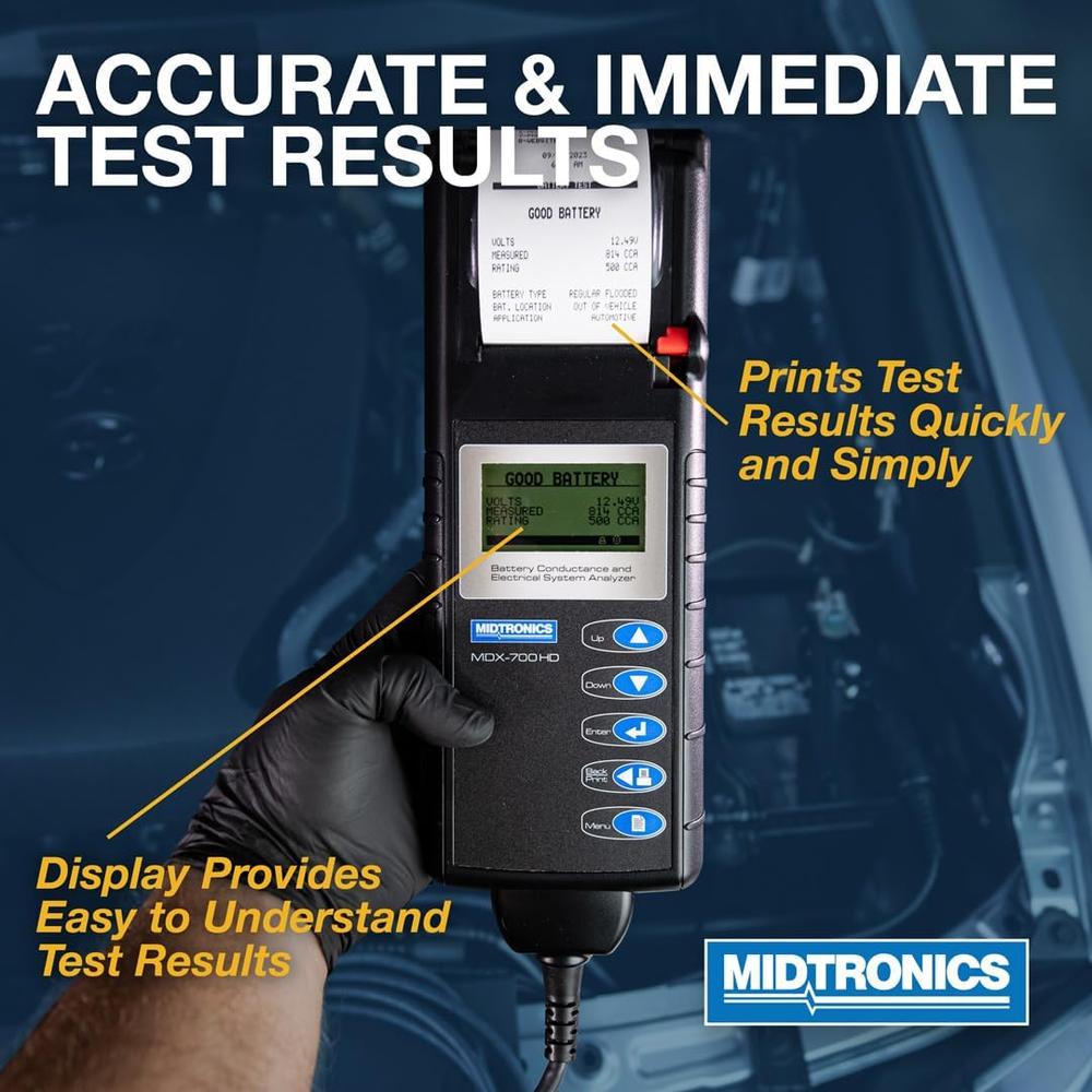 Les résultats des tests, y compris plusieurs tests de batterie, peuvent être imprimés sur une imprimante intégrée en option