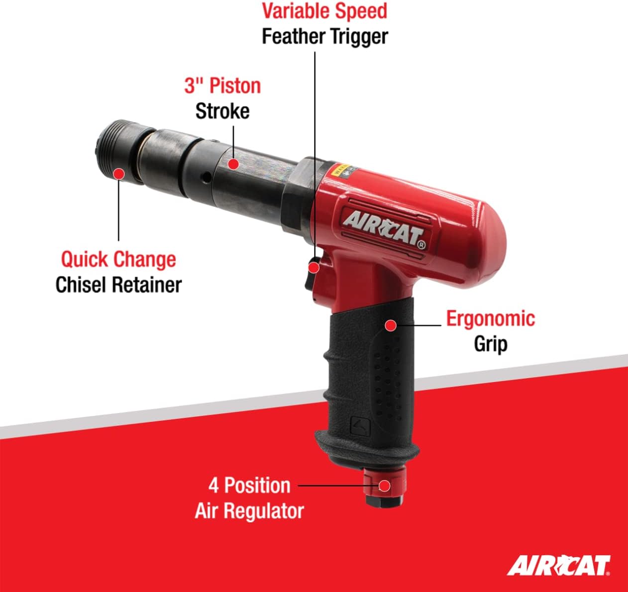 AirCat 5250-A-T .401 SHANK SUPER DUTY AIR HAMMER, 2,500 BPM, 3" PISTON STROKE, QUICK CHANGE RETAINER, 4-POSITION AIR REGULATOR