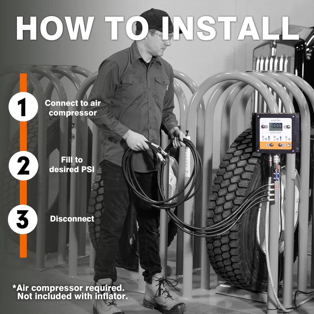 Inflate or deflate up to 4 tires simultaneously and automatically up to 145 psi.