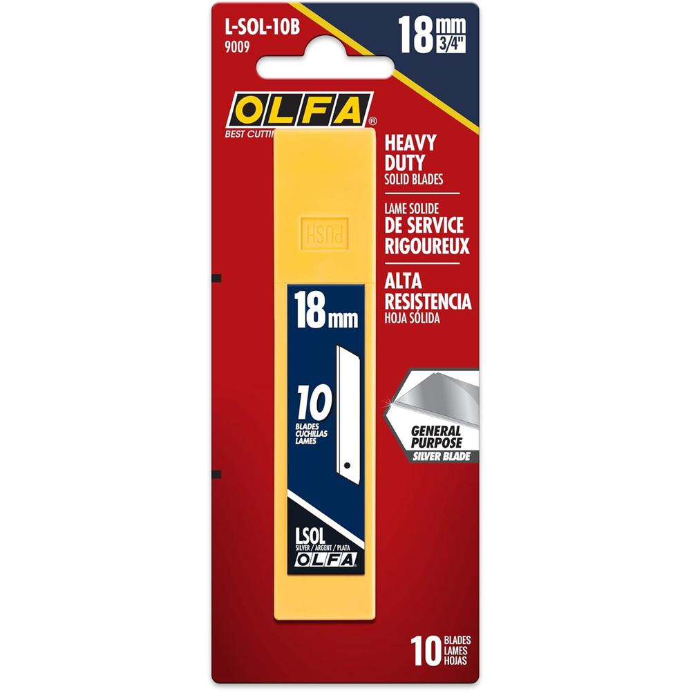 Includes 10 OLFA 18mm solid carbon tool steel snap-off blades