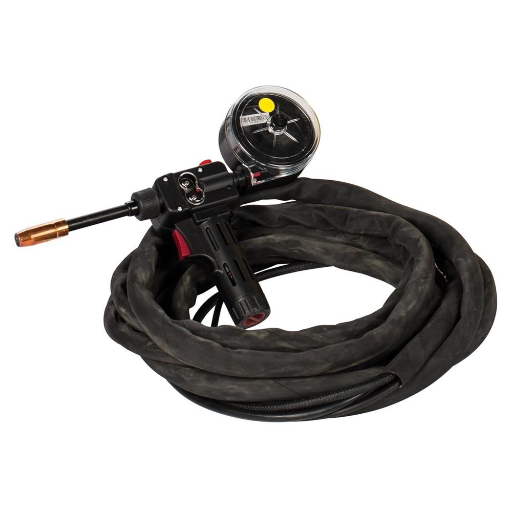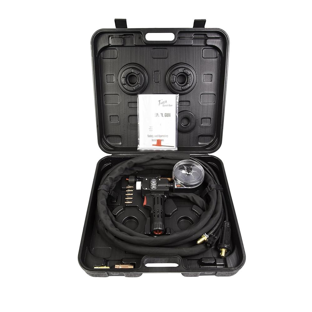 This lightweight and reliable Spool Gun is ideal for use with the ESAB Rebel 215ic welders. The durable, heavy-duty drive motor ensures smooth operation while maintaining precise control, even on challenging jobs. 12ft. (4M) cable assembly provides you with plenty of reaches and easy access to your work area. This spool gun includes a protective sleeve covering the power cable, gas hose and trigger cable, providing excellent impact resistance. Easy to remove clear spool cover for installing a standard 4? (102mm) spool makes spring changeovers a snap. Just press down on the button at the top and pull out the old spool when you need a replacement!